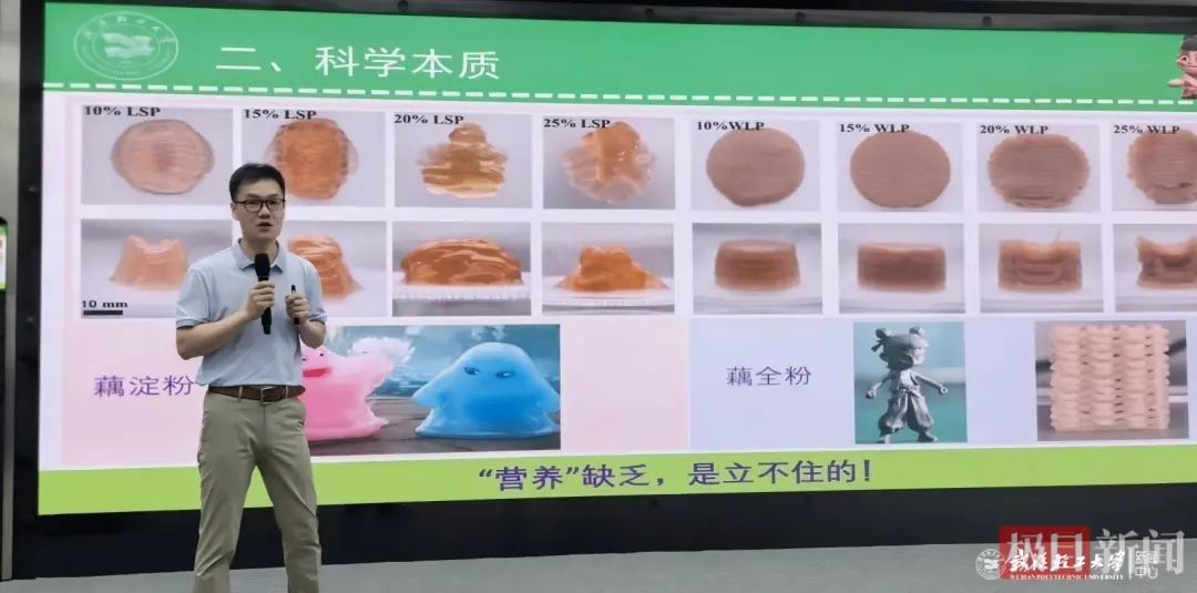 易阳深信,真正的能力培养源于实践。他将前沿的科研项目转化为生动的课堂,让学生在实践中学习、在挑战中成长。2023级研究生汪锦丰的故事便是生动例证。作为一名跨专业考入食品加工与安全专业的学生,汪锦丰最初与易阳的相识源于共同的爱好——羽毛球。在球场上感受到易阳的亲和力,又听闻导师卓越的科研能力,汪锦丰主动申请加入了易阳的团队,并承担起莲藕全粉3D打印这一创新课题。