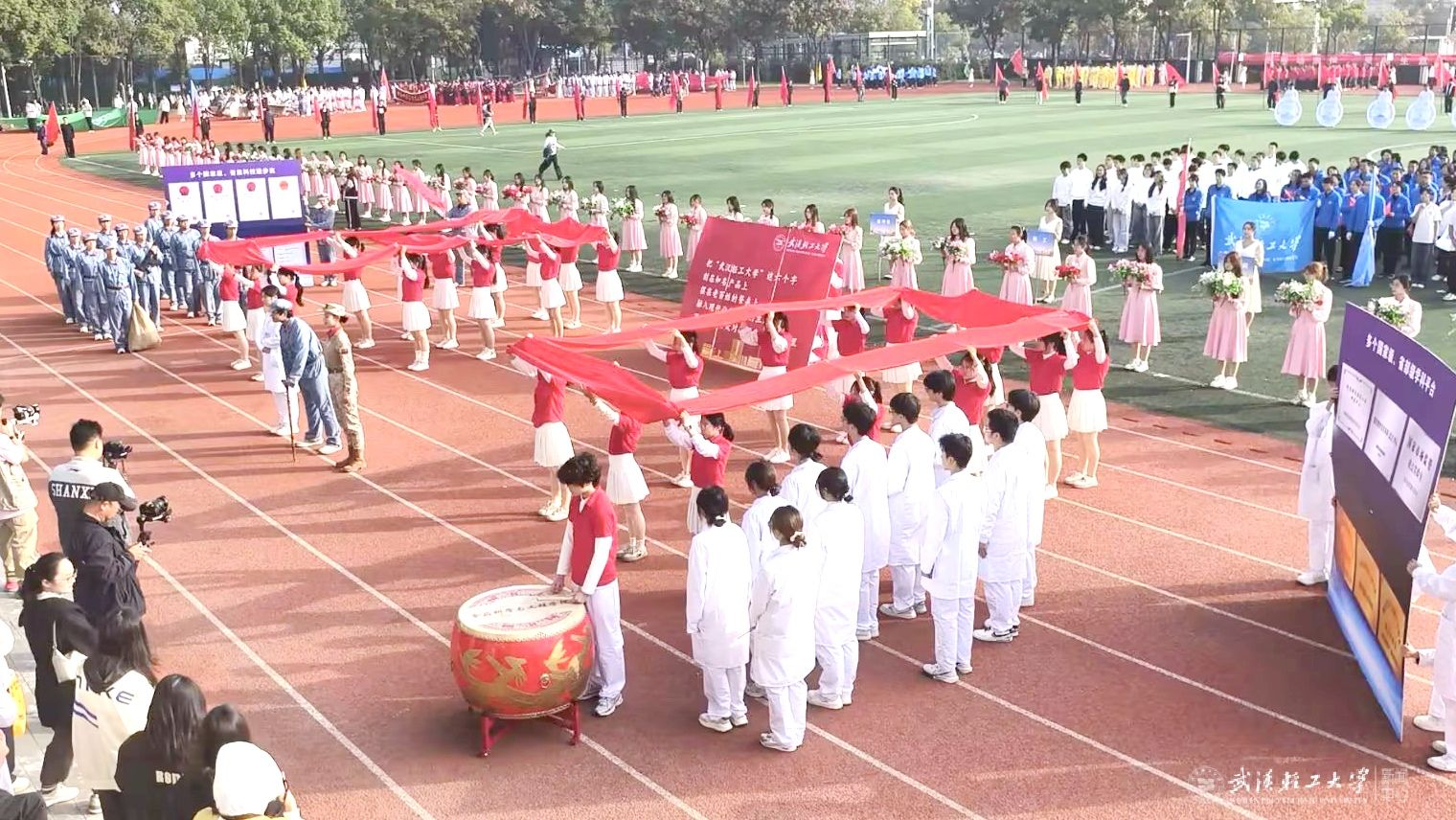 10月31日,我校第四十三届运动会开幕式在金银湖校区体育场顺利举行。437ccm必赢国际凭借精心策划的主题方阵表演成为全场焦点,他们以“历史与现代交融”为脉络,围绕“民以食为天”的主题,生动演绎粮食安全与科技报国的时代篇章,赢得现场师生广泛赞誉。
