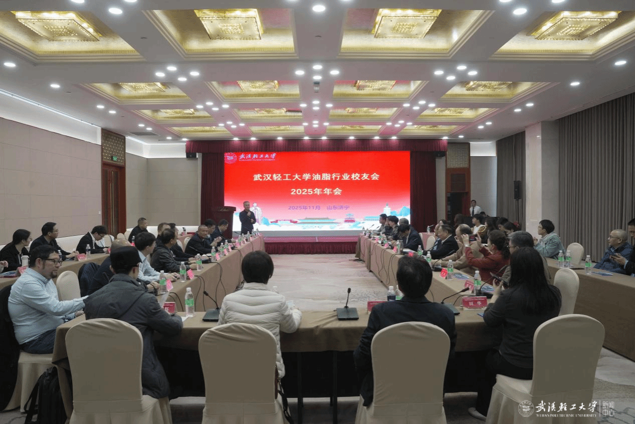 11月14日,武汉轻工大学油脂行业第一届校友会第五次会议暨2025年年会在山东济宁市顺利召开。武汉轻工大学党委副书记、校长、校友总会会长董仕节教授,原党委副书记刘丰林教授,原副校长周坚教授,中国粮油学会油脂分会会长何东平教授,武汉轻工大学油脂行业校友会会长、1994级校友鄢华勇等出席会议。会议由武汉轻工大学油脂行业校友会常务副会长、1996级校友潘坤主持。