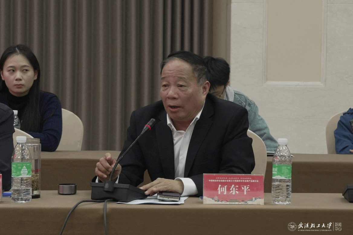 何东平代表中国粮油学会油脂分会对本次会议的召开表示热烈祝贺,并倡议校友们积极支持、共同推动母校发展,以优异成绩为即将到来的母校75周年生日献礼。
