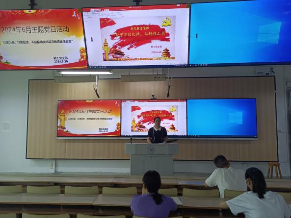 2024年6月27日,食品科学与工程学院粮食工程系党支部在乐学楼隆重举行了主题为“坚守党的纪律、站稳粮工岗”支部书记讲党课活动。此次活动由粮食工程系党支部书记主持。