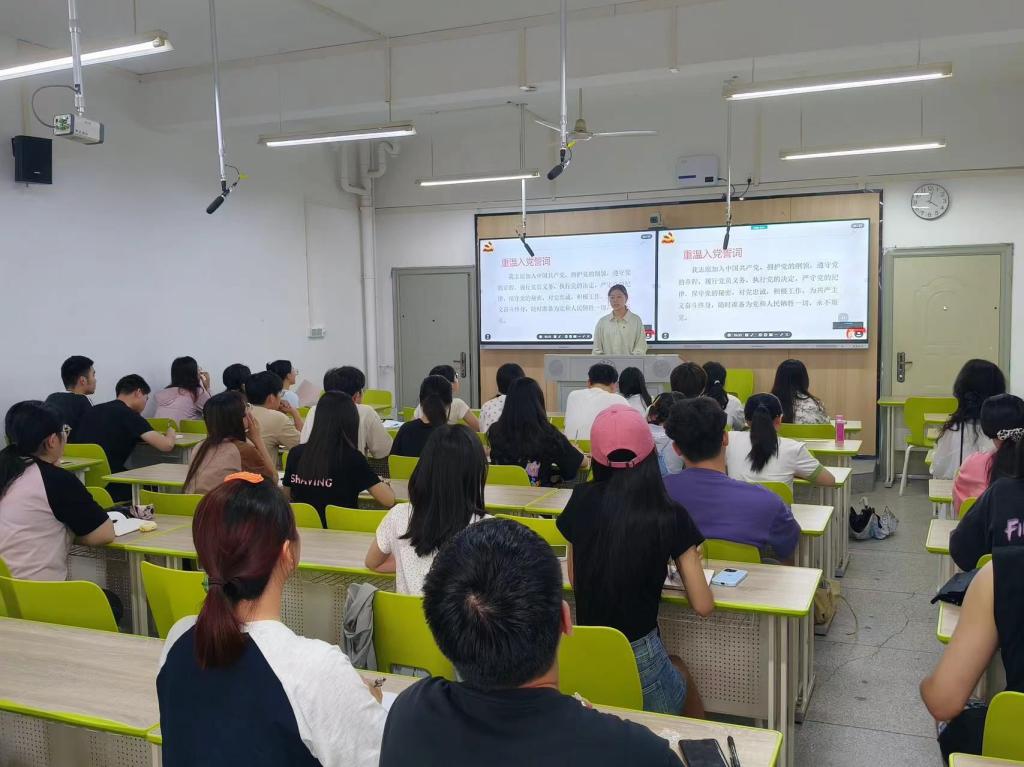 最后,支部书记门玲结合《条例》和《高校违纪违法典型案件60例》,讲述了因理想信念缺失、党纪意识薄弱造成的几起影响恶劣的高校违纪违法案例,警示学生党员从中汲取经验教训,在日常学习生活和今后走向工作时以纪为尺、知止而行,牢记入党初心,争做合格党员。